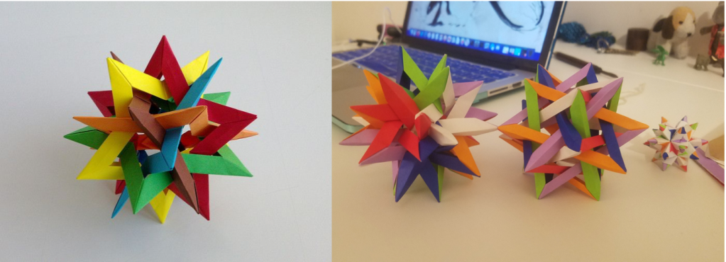 I spent most of Saturday figuring out how to build an origami set of six intersecting five pointed stars, where each star is usually it’s own color (making it fun to look at and easy to assemble). Instead in this one each unit has two colors so each cluster of five points had one color instead. My brain hurts, but I’m quite delighted with the result. It occurred to me late yesterday that’d I’d spent basically all of that day in a small white walled room not speaking to anyone, and that maybe this is why I’m so baffled when other people want to Do Things. I am a creature of simple, often stationary, pleasures.