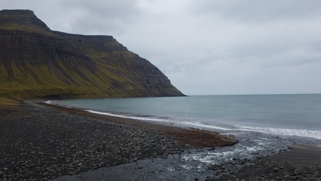 Then we piled back into the cars (one of my favorite things about driving in Iceland is that a) the views are always stunning and b) there’s streams and rivers Everywhere so you are constantly going over bridges and culverts, some of which are even big enough for a baby dragon to hide in) and drove up a lookout point that was an old NATO radar station with some stunning cliffs.