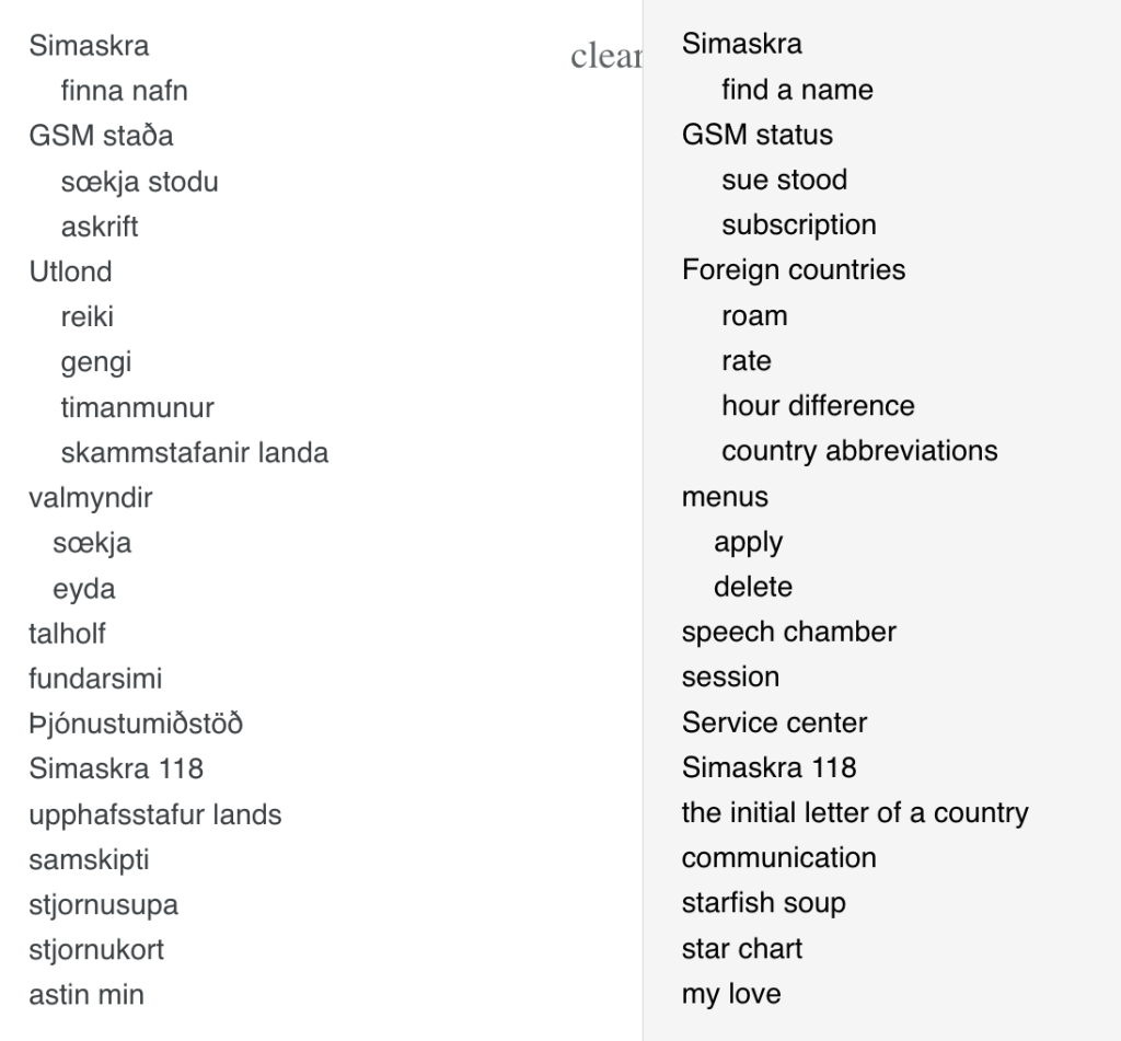 Unrelatedly, I’ve been having trouble translating one of the menus on my phone out of Icelandic (new sim card and all that) and Google Translate is not being maximally helpful: