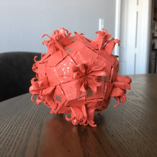 A couple days ago my elder sibling sent me a picture of a modular origami Thing that looks kinda like a pomegranate.