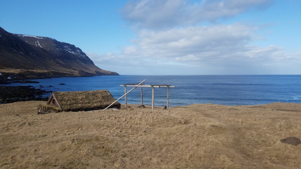 We went on a field trip earlier this week to a town a fjord over, and once we got done wandering around and pointing at murals and fish drying huts we got scooped up and shown a a traditional turf house near a beach and were just let loose to wander and poke everything.